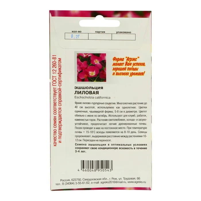 Растение светолюбивое, холодо- и засухоустойчивое, предпочитает легкие дренированные почвы. Посев проводят в мае на постоянное место. Глубина заделки семян 0,5-1 см. При температуре почвы + 15-18 °С всходы появляются на 8-10 день. Сеянцы прореживают, выдерживая расстояние между растениями 10-12 см. Пересадки не переносит.