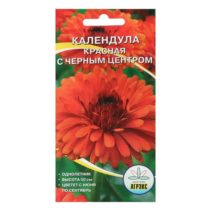 Уникальная по своей окраске календула. Яркое, компактное растение высотой 50-60 см с необычной окраской соцветий. Соцветия – махровые и полумахровые, округлые, красной окраски с тёмным центром и красным воротничком. Прекрасно выглядит в больших массивах, бордюрах, в букетах.