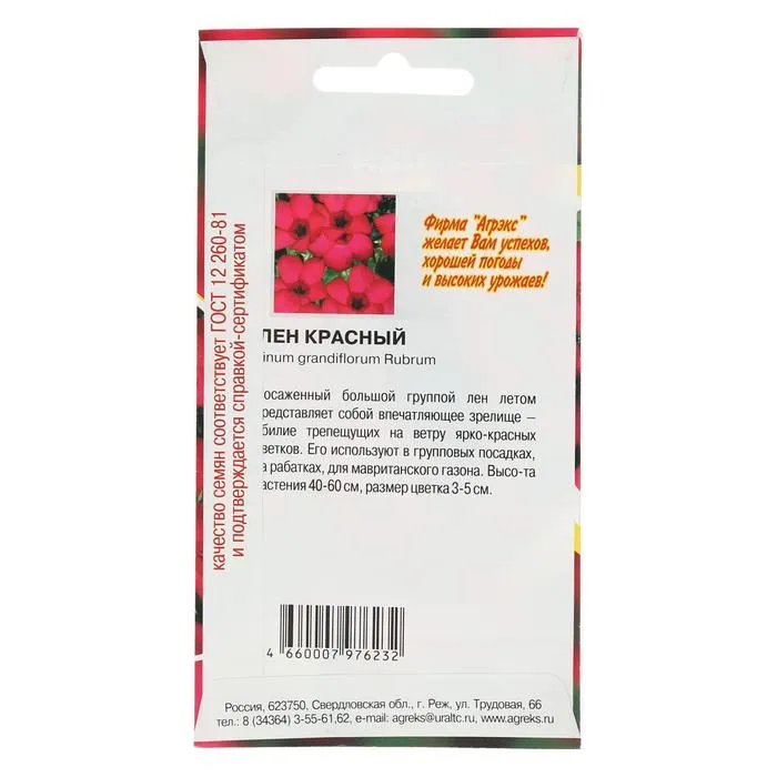 Семена цветов однолетние Лен Красный 0,2 гр. — Характеристики