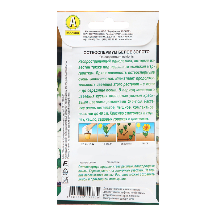 Семена Цветов Остеоспермум "Белое золото" , 10 шт — Характеристики