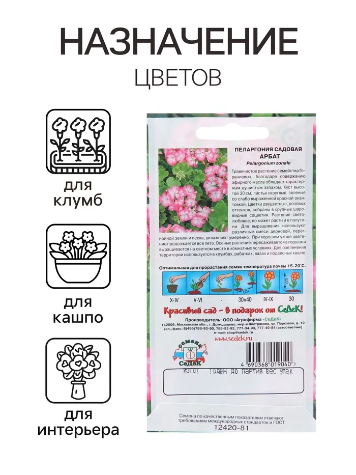 Семена цветов Пеларгония "Арба", Евро, 5 шт — Характеристики