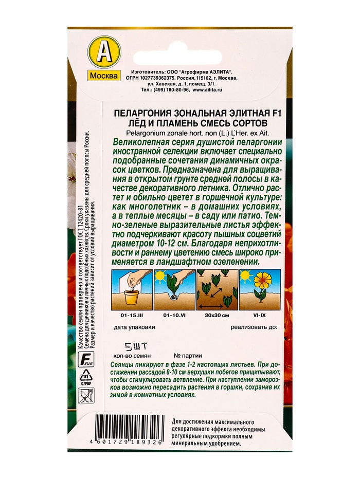 Семена цветов Пеларгония Элитная F1 лёд и пламень, смесь сортов Мн Золотая серия, Ц/П,5 шт. — Характеристики