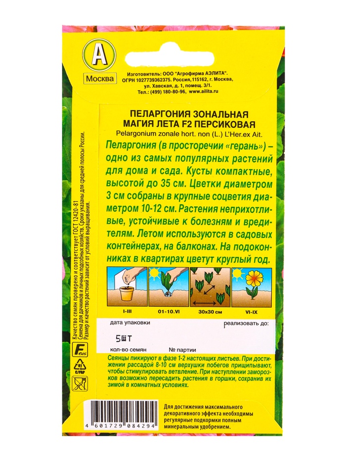 Семена цветов Пеларгония Магия лета F2 персиковая Мн, Ц/П,5 шт. — Характеристики