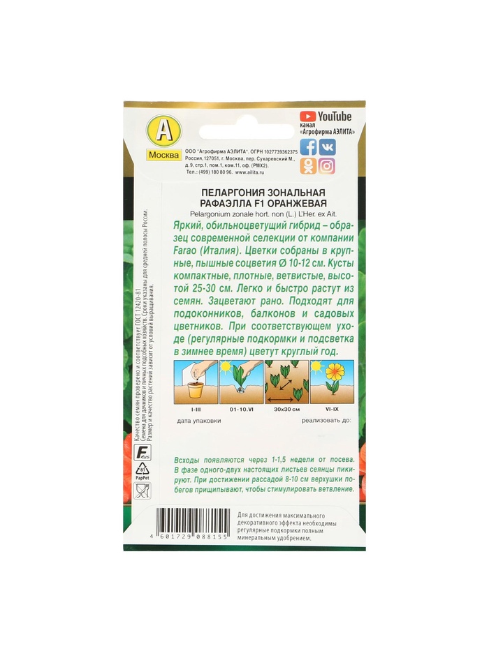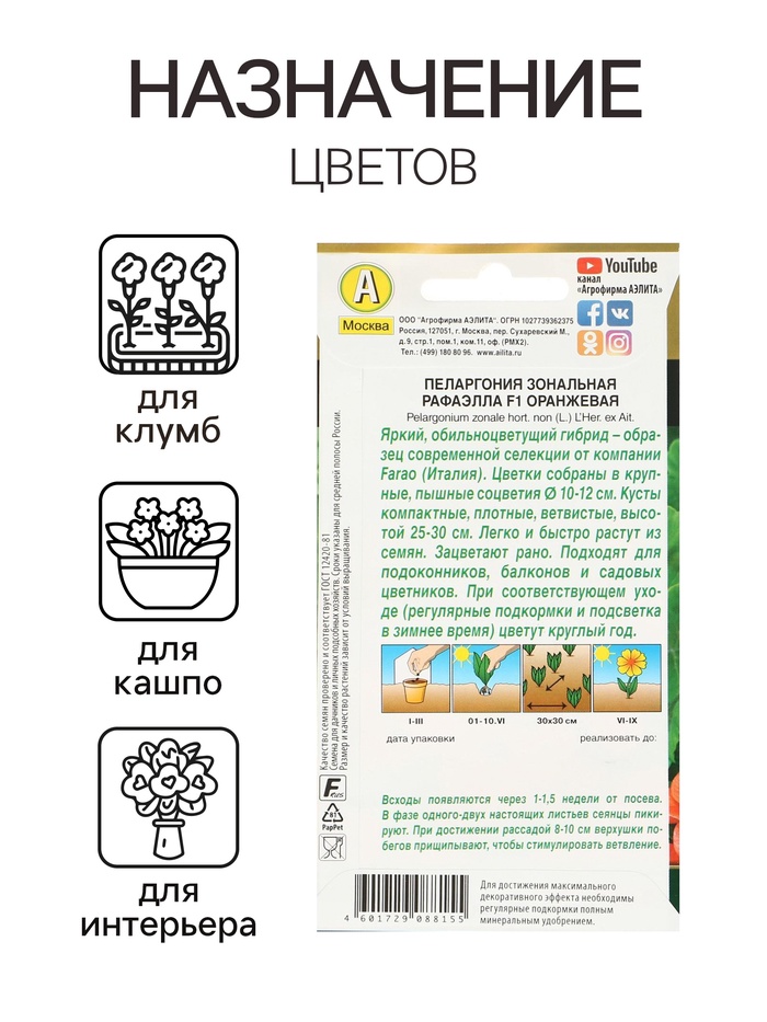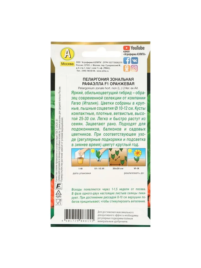 Семена цветов Пеларгония "Рафаэлла", оранжевая, F1, 5 шт — Характеристики