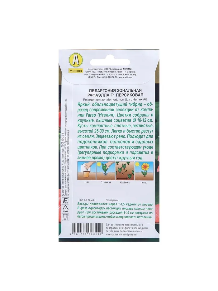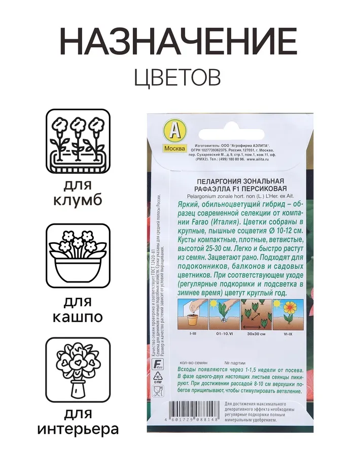 Семена цветов Пеларгония "Рафаэлла", персиковая, F1, 5 шт — Характеристики