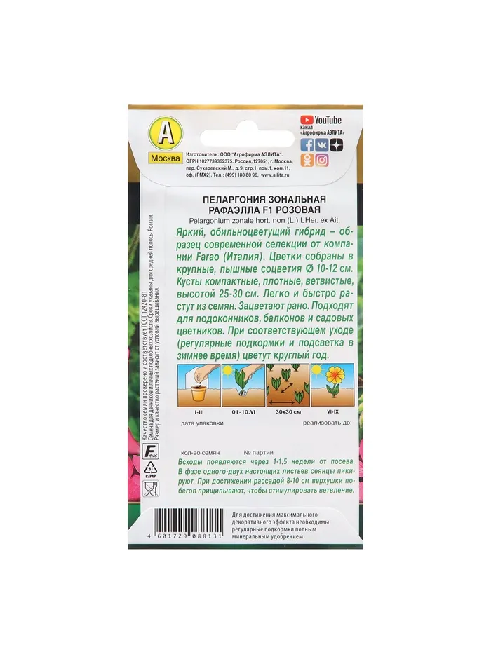 Новые гибриды пеларгонии Рафаэлла F1 розовая – образец современной селекции. Их красивые, компактные кусты высотой 30 см хорошо разветвлены, выглядят сильными, густыми, плотными. Венчающие куст пышные шары соцветий 12 см диаметром имеют богатую палитру цветов. Гибриды легко и быстро растут из семян – всходы появляются через 1-1,5 недели, зацветают на ранней стадии развития. Применение универсальное:горшечное содержание в комнатах, на солнечных балконах и в качестве летника в садовых цветниках. Растения устойчивы к жаре, хорошо переносят кратковременные понижения температуры. При соответствующем уходе (регулярные подкормки и подсветка в зимнее время) цветут круглый год.