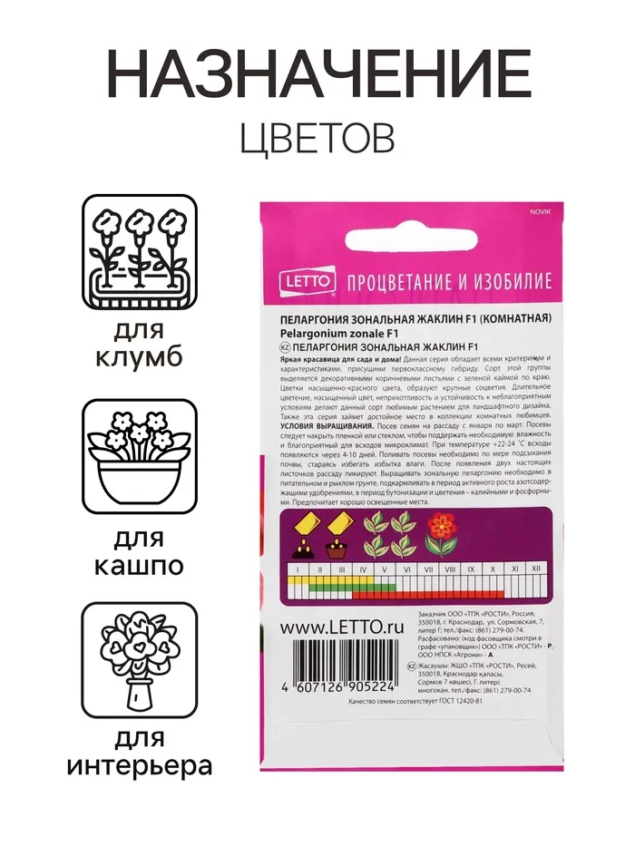 Семена цветов Пеларгония "Жаклин", красная с коричневым листом, F1, 4 шт — Характеристики