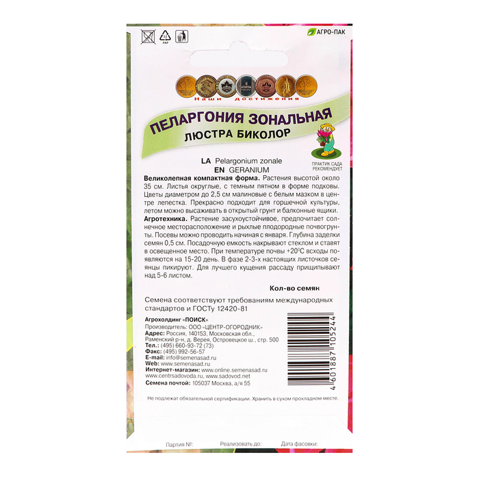 Семена цветов Пеларгония зональная "Люстра Биколор", 5шт. — Характеристики