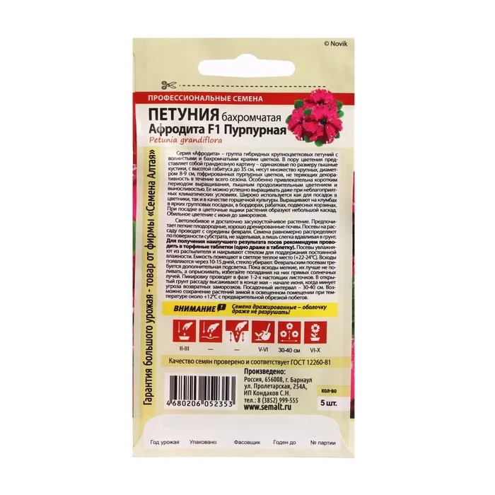 При выращивании в вазонах образует небольшой каскад. В период цветения посадок рекомендуется предусмотреть защиту от дождей и сильного ветра.Семена в гранулах!Гранулы располагают на поверхности почвы, не заделывая их, хорошо увлажняют из распылителя. При попадании влаги на гранулу оболочка должна раствориться. Посевы накрывают стеклом для сохранения постоянной влажности до полных всходов. Февральским посевам требуется дополнительная подсветка.