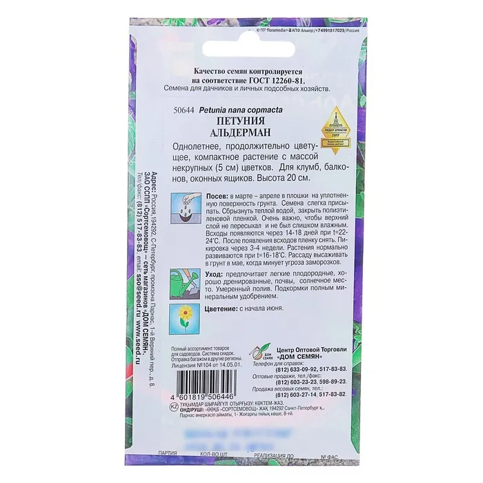 Однолетняя многоцветковая петуния. Кустик плотный, компактный, высотой до 30 см, обильно усыпан красивыми крупными сине-фиолетовыми цветками. Обильно цветет с июля по сентябрь. Используют в клумбах для ярких групп, на бордюрах, рабатках, в подвесных корзинках. Посев на рассаду проводят в марте. Семена слегка вдавливают в почву, землей не присыпают. Посадочную емкость накрывают стеклом и ставят в освещенное место. При температуре почвы +18-20°C всходы появляются на 14-20 день. Сеянцы пикируют в фазе 2-х настоящих листьев. Рассаду высаживают в мае, выдерживая расстояние между растениями 20-30 см. Растение светолюбивое, засухоустойчивое, хорошо растет на любых питательных почвах.