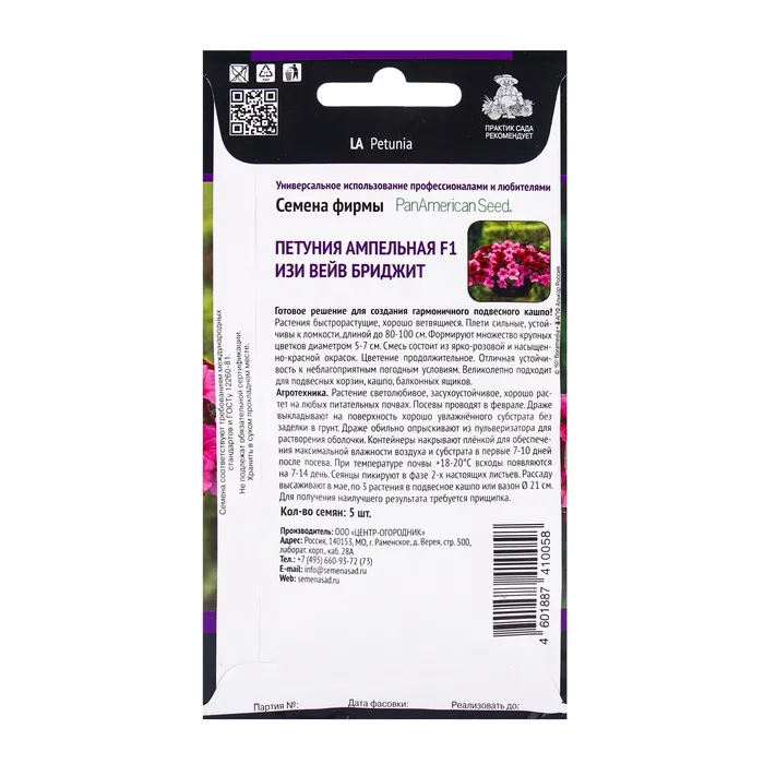 Семена цветов Петуния ампельная F1 Изи Вейв Бриджит, 5шт — Характеристики