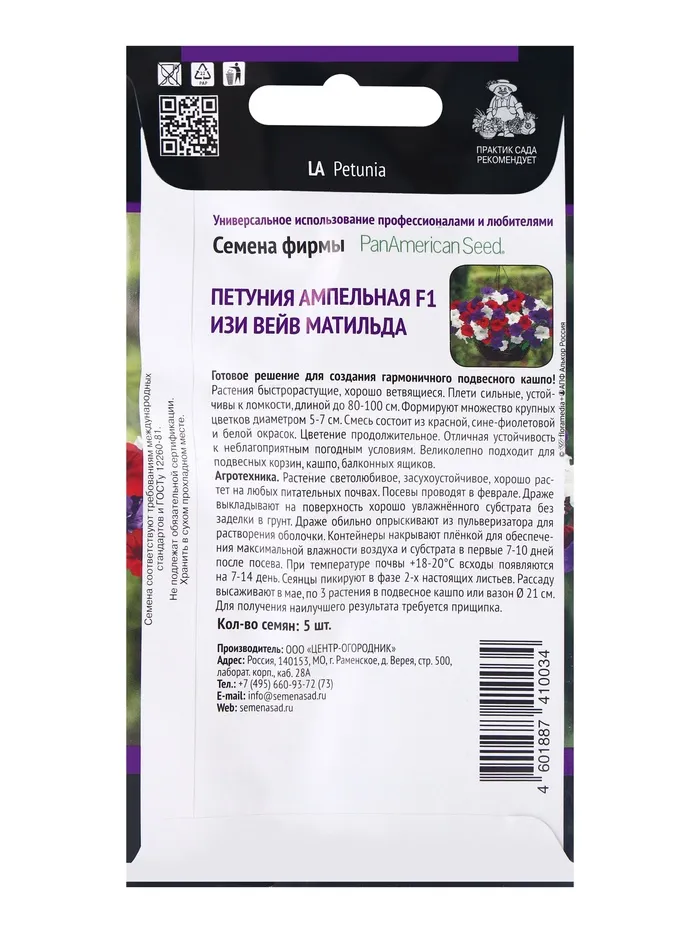 Семена цветов Петуния ампельная F1 Изи Вейв Матильда, 5шт — Характеристики