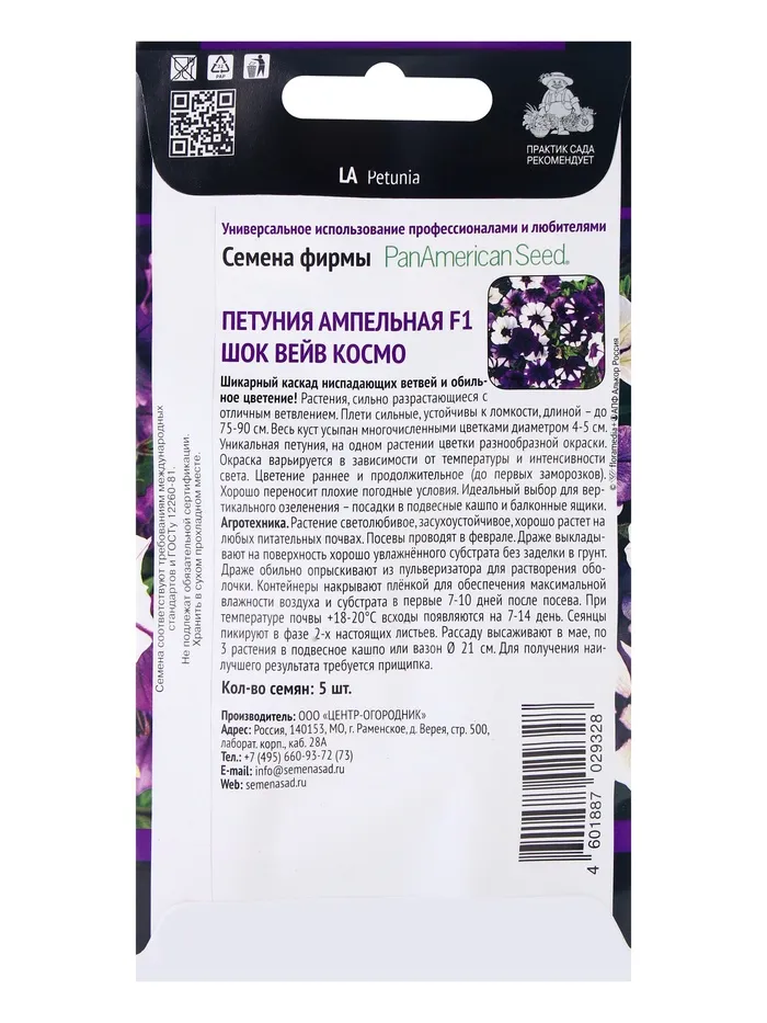 Семена цветов Петуния ампельная F1 Шок Вейв Космо, 5шт — Характеристики
