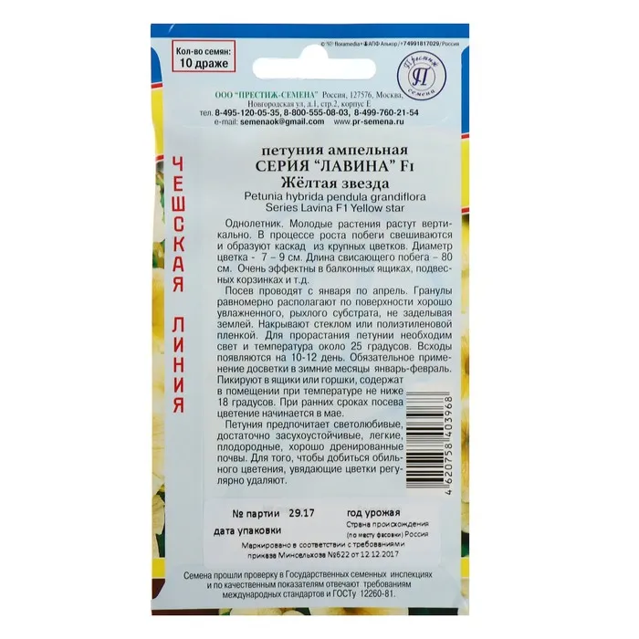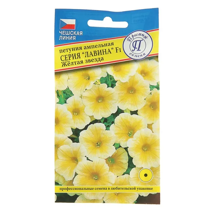 Семена цветов Петуния ампельная крупноцветковая "Лавина" Желтая звезда F1, О, драже 5 шт — Характеристики