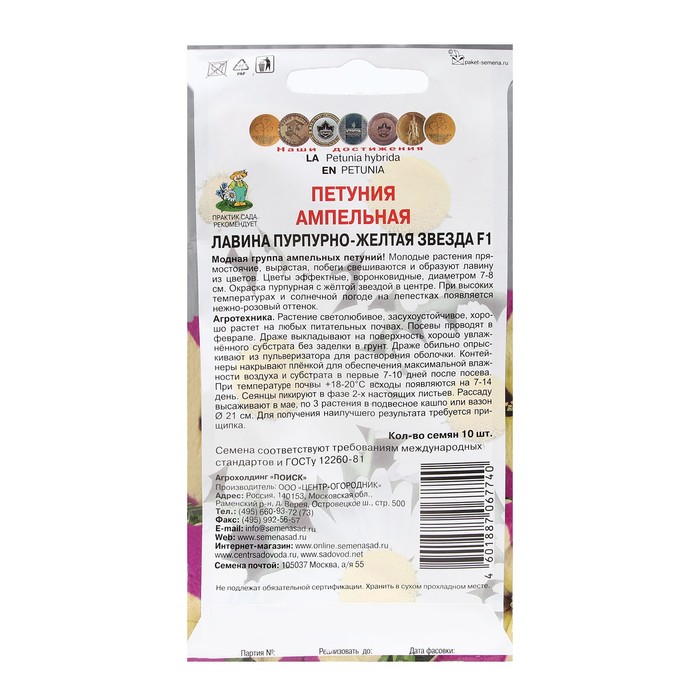 Семена цветов Петуния ампельная «Лавина Пурпурно-желтая Звезда», F1, 10 шт., «ПОИСК» — Характеристики