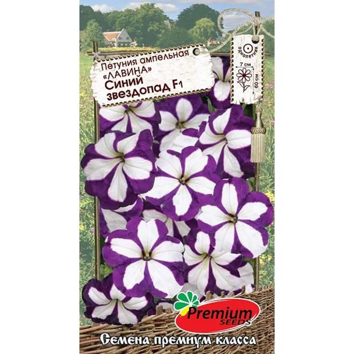 Восхитительная ампельная петуния серии “ЛавинаЕ1”. Растение однолетнее, высотой 60 см. Цветки крупные, очень красивые, диаметром 7 см. Свисающие к земле побеги сплошь покрыты цветками. Представленный вид петунии обычно высаживают в вазы и высокие контейнеры, балконные и оконные ящики, но высаживают и в грунт. Быстро разрастаясь, они заполняют пустоты в цветнике, украшают каскадами зелени и цветов склон альпийской горки или берег водоема. Цветение обильное и продолжительное. Не теряет своей декоративности в течение всей вегетации.
