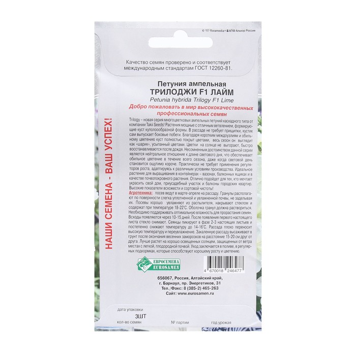 Идеальное растение для выращивания в контейнерах – вазонах, балконных ящиках и в качестве почвопокровного растения. Отлично подойдет для тех, кто мечтает украсить свой дом, приусадебный участок и балконы городских квартир. Высокие показатели всхожести и сортовой чистоты. Посев ведут в марте-апреле на рассаду. Гранулы располагают по поверхности слегка уплотненной и увлажненной почвы, не заделывая их. Посевы хорошо увлажняют из распылителя, накрывают стеклом и содержат при температуре 18-22 градусов С. Оболочка гранул должна раствориться.