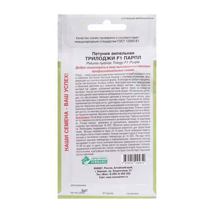 Идеальное растение для выращивания в контейнерах – вазонах, балконных ящиках и в качестве почвопокровного растения. Отлично подойдет для тех, кто мечтает украсить свой дом, приусадебный участок и балконы городских квартир. Высокие показатели всхожести и сортовой чистоты.