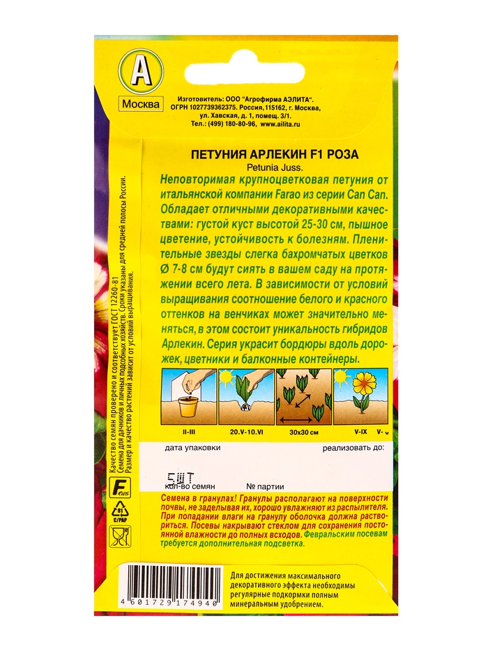 Семена цветов Петуния Арлекин Роза F1 крупноцветковая (драже в пробирке) С. Farao, Ц/П,5 шт. 109456 — Характеристики
