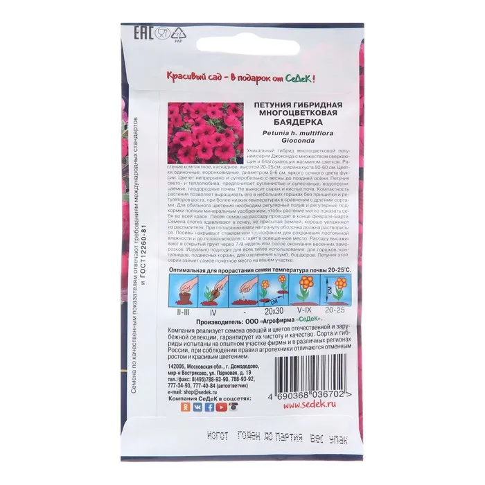 Семена цветов Петуния "Баядерка", Евро, 5 шт — Характеристики