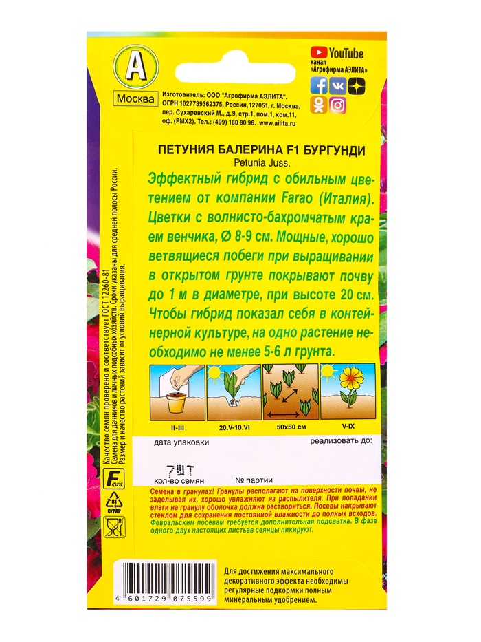 Семена цветов Петуния Балерина бургунди крупноцветковая F1 (драже) С. Farao, Ц/П,7 шт. — Характеристики