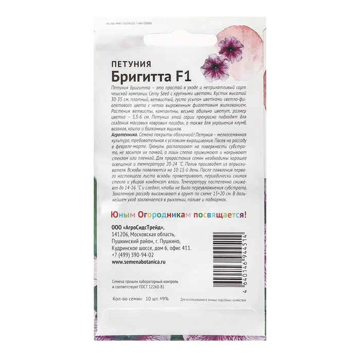 Гибридный, многоцветковый сорт. Растение хорошо облиственное, ветвистое. Цветение обильное и продолжительное. Цветки среднего размера до 6 сантиметров в диаметре, бледно-фиолетового цвета с темными прожилками. Петуния любит солнечные места и плодородные почвы. Сорт петунии устойчив к различным видам заболевания. Отлично подходит для озеленения и выращивания в контейнере, на балконе, в саду, в подвесном кашпо или в домашних условиях. Для посадки семян лучше использовать покупной грунт и при возможности стерилизовать его. Если семена петунии очень мелкие, их не следует присыпать землей, просто аккуратно полить теплой водой и накрыть ёмкость стеклом.