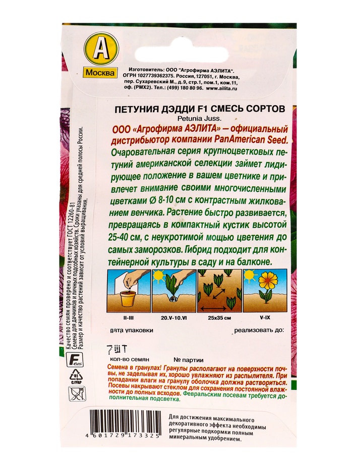 Семена цветов Петуния Дэдди F1, смесь сортов (драже в пробирке) Спецсерия PanAmerican, Ц/П,7 шт. 10 — Характеристики