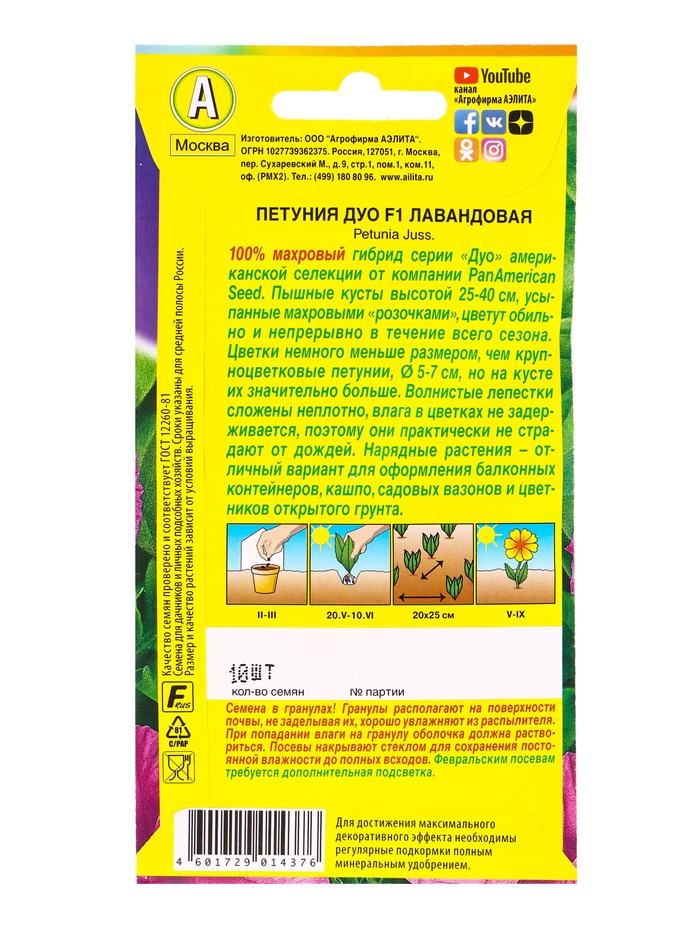 Семена цветов Петуния Дуо F1 лавандовая (драже в пробирке) С. PanAmerican, Ц/П,10 шт. — Характеристики