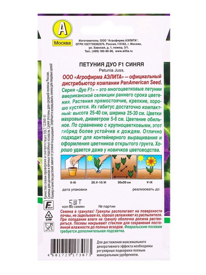 Семена цветов Петуния Дуо F1 синяя многоцветковая махровая (драже) PanAmerican, Ц/П,5 шт. — Характеристики