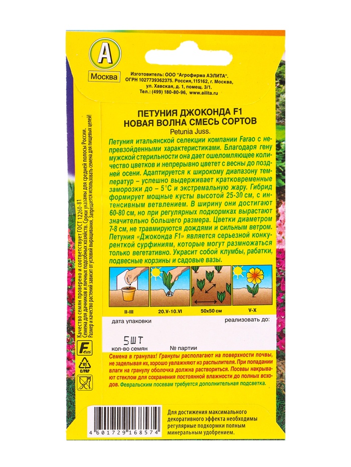 Семена цветов Петуния Джоконда F1 новая волна, смесь сортов (драже) С. Farao, Ц/П,5 шт. — Характеристики
