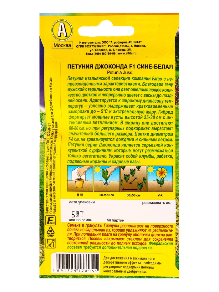 Семена цветов Петуния Джоконда F1 сине-белая (драже в пробирке) С. Farao, Ц/П,5 шт. — Характеристики