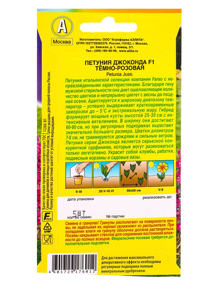 Семена цветов Петуния Джоконда F1 темно-розовая (драже в пробирке) С. Farao, Ц/П,5 шт. — Характеристики