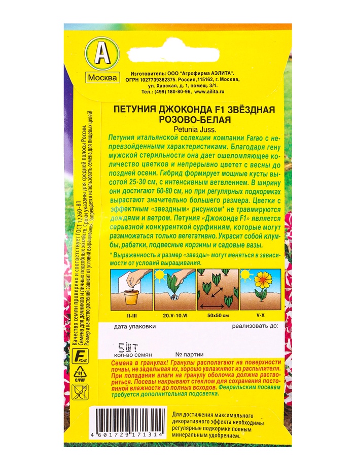 Семена цветов Петуния Джоконда F1 звездная розово-белая (драже в пробирке) С. Farao, Ц/П,5 шт. 1094 — Характеристики