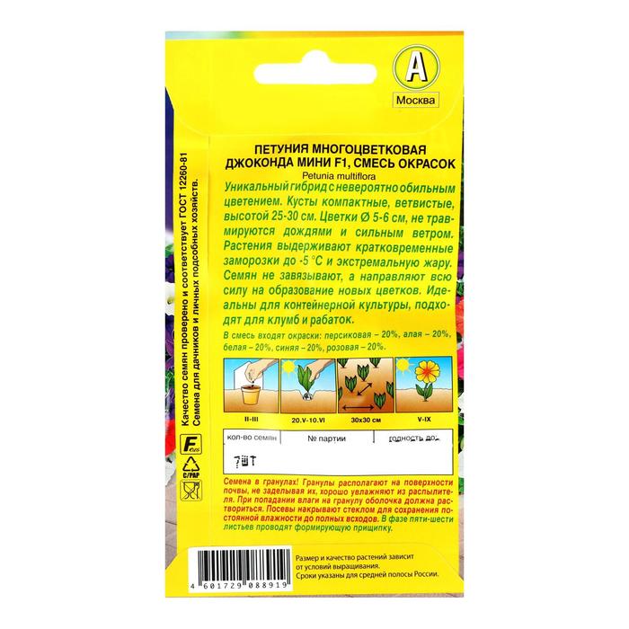 Уникальный гибрид с невероятно обильным цветением. Кусты компактные, ветвистые, высотой 25-30 см. Цветки ? 5-6 см, не травмируются дождями и сильным ветром. Растения выдерживают кратковременные заморозки до -5 °С и экстремальную жару. Семян не завязывают, а направляют всю силу на образование новых цветков. Идеальны для контейнерной культуры, подходят для клумб и рабаток. В смесь входят окраски: персиковая – 20%, алая – 20%, белая – 20%, синяя – 20%, розовая – 20%.