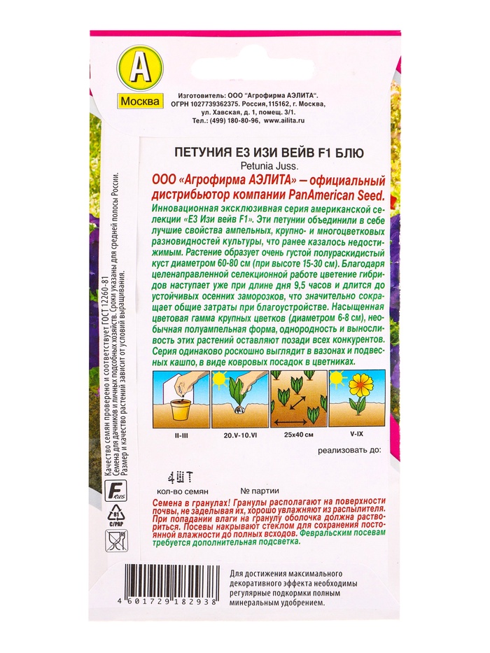 Семена цветов Петуния Е3 Изи Вейв F1 блю (драже) PanAmerican Wave, Ц/П,4 шт. — Характеристики