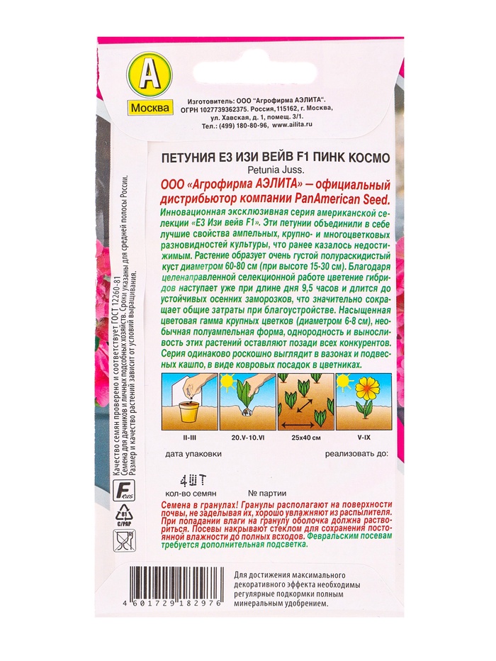 Семена цветов Петуния Е3 Изи Вейв F1 пинк космо (драже) PanAmerican Wave, Ц/П,4 шт. — Характеристики