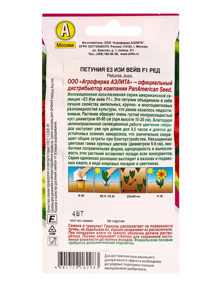 Семена цветов Петуния Е3 Изи Вейв F1 ред (драже) PanAmerican Wave, Ц/П,4 шт. — Характеристики
