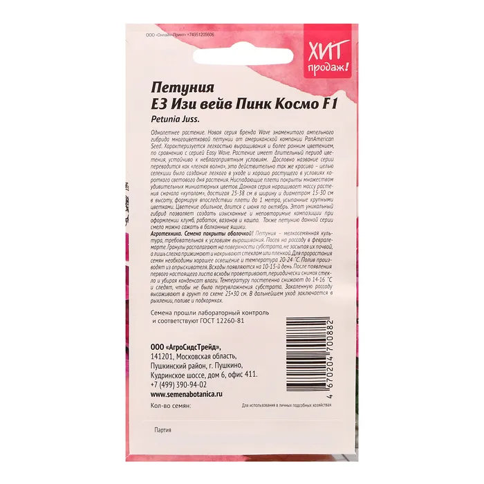 Семена цветов Петуния "Е3 Изи Вейв Пинк Космо F1", 5 шт — Характеристики