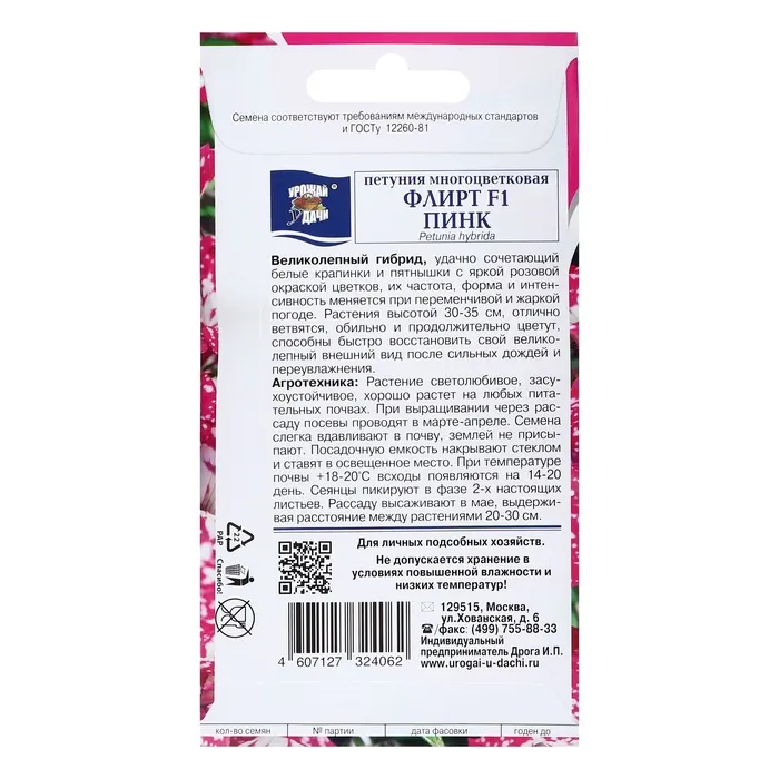 Семена цветов Петуния "ФЛИРТ Пинк", F1, 0,007 г — Характеристики