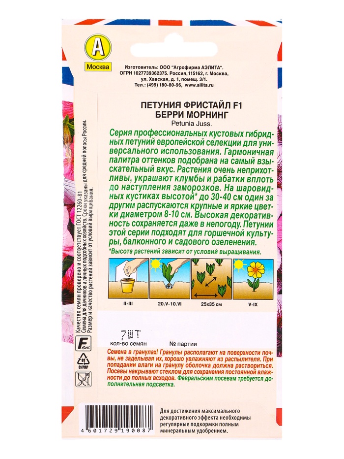 Семена цветов Петуния Фристайл F1 берри морнинг (драже) Британская коллекция цветов, Ц/П,7 шт. 1094 — Характеристики