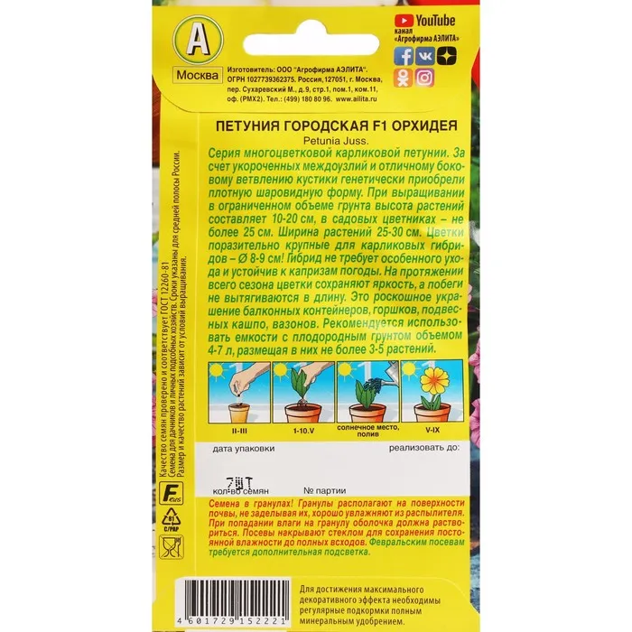 Семена Цветов Петуния "Городская", F1, орхидея, драже в пробирке, 7 шт — Характеристики