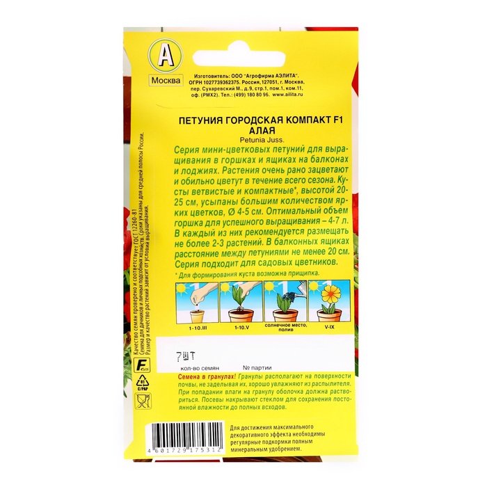 Семена цветов Петуния "Городская компакт" F1 алая, ц/п, 7 шт — Характеристики