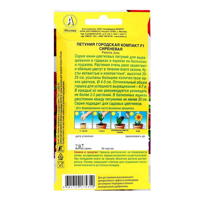 Семена цветов Петуния "Городская компакт" F1 сиреневая, ц/п, 7 шт — Характеристики