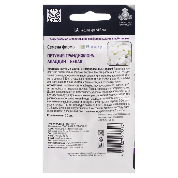 Красивые крупные цветки с гофрированным краем! Растения компактные с насыщенно-зелёной листвой. Высота растения – 25-30 см. Цветение ранее, продолжительное, цветки крупные, окраска - белая. Диаметр цветка – 8-10 см. Идеально подходит для озеленения. Используют для посадки в горшки, контейнеры и высадки в открытый грунт.