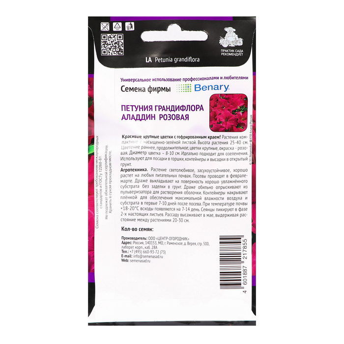 Красивые крупные цветки с гофрированным краем! Растения компактные с насыщенно-зелёной листвой. Высота растения – 25-30 см. Цветение ранее, продолжительное, цветки крупные, окраска - розовая. Диаметр цветка – 8-10 см. Идеально подходит для озеленения. Используют для посадки в горшки, контейнеры и высадки в открытый грунт.Агротехника. Растение светолюбивое, засухоустойчивое, хорошо растет на любых питательных почвогрунтах. Посев семян на рассаду проводят в феврале-марте. Семена слегка вдавливают в почву, землей не присыпают. Посадочную емкость накрывают стеклом и ставят в освещенное место. При температуре почвы +18-20°C всходы появляются на 14-20 день. Сеянцы пикируют в фазе 2 настоящих листьев. Рассаду высаживают в открытый грунт после окончания весенних заморозков.Семена соответствуют требованиям международных стандартов и ГОСТу РФ 12260-81