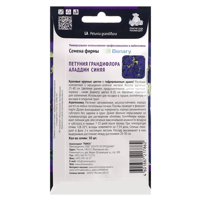Красивые крупные цветки с гофрированным краем. Растения компактные с насыщенно-зелёной листвой. Высота растения – 25-30 см. Цветение ранее, продолжительное, цветки крупные, окраска - синяя. Диаметр цветка – 8-10 см. Идеально подходит для озеленения. Используют для посадки в горшки, контейнеры и высадки в открытый грунт.