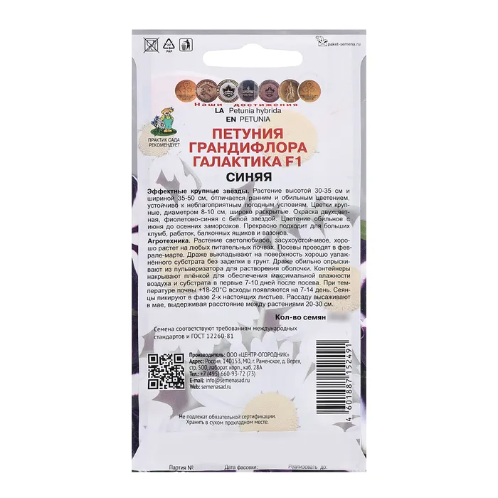 Семена цветов Петуния грандифлора "Галактика", Синяя, F1, 10шт — Характеристики