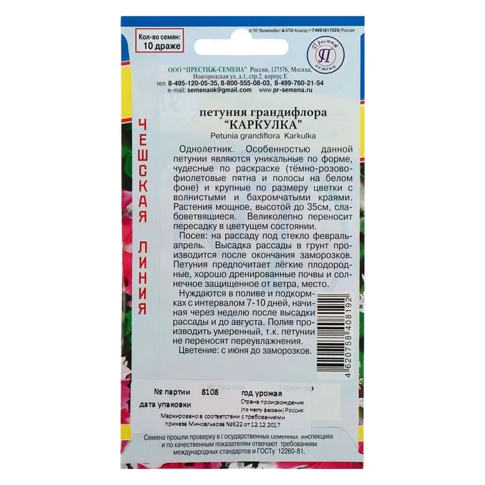 Посев: на рассаду под стекло февраль-апрель. Высадка рассады в грунт производится после окончания заморозков. Петуния предпочитает лёгкие плодородные, хорошо дренированные почвы и солнечное защищенное от ветра, место.