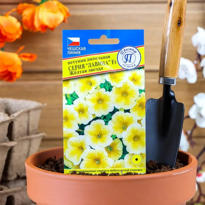 Однолетник. Крупные воронковидные цветы окрашены в довольно редкий для петуний интенсивно-желтый цвет, резко контрастирующий с другими окрасками. Петунии устойчивы к неблагоприятным погодным условиям, отлично растут не только в теплые, солнечные дни, но и при холодной, дождливой погоде. Растение высотой 30-35 см, компактное, хорошо ветвится. Используется для украшения клумб, рабаток, бордюров, наилучшим образом подходит для посадки в вазоны, кашпо, балконные и оконные ящики.