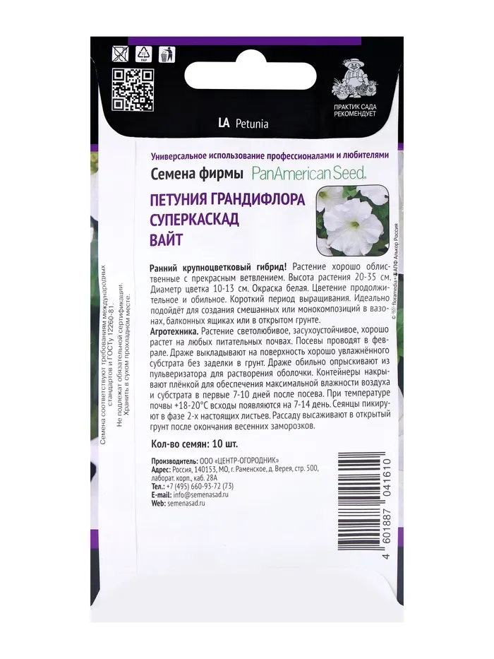 Семена цветов Петуния грандифлора Суперкаскад Вайт, 10шт — Характеристики